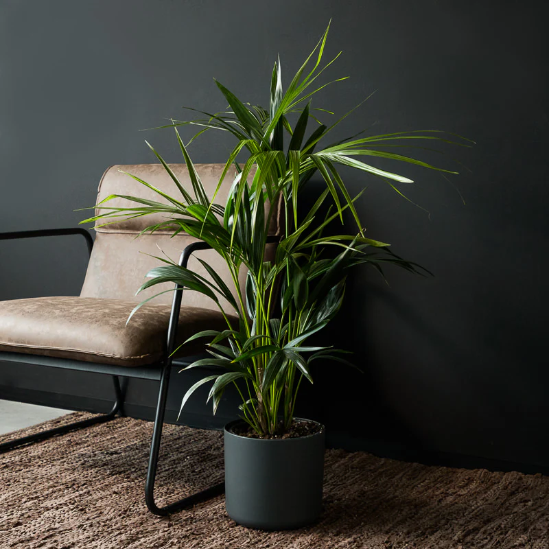 Die Kentia 'Forsteriana' gehört zur Familie der Arecaceae, und ist auch bekannt als Kentiapalme. Sie ist eine robuste Zimmerpflanze. Wenn die Palme ausgewachsen ist, kann sie blühen. Dies wird in Ihrem Wohnzimmer oder Büro nicht geschehen.